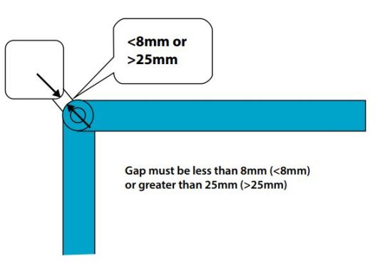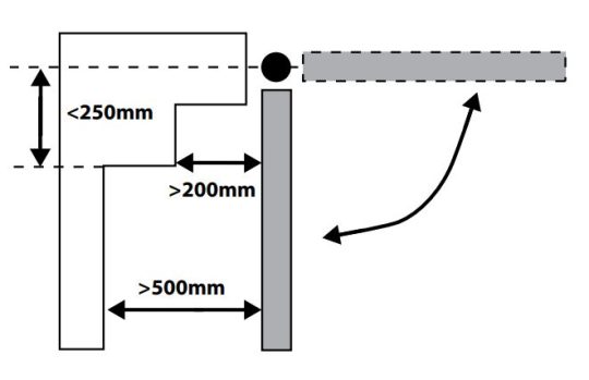 Opening crush and impact hazards controlled by either: (Opening crush hazards exist wherever a leaf opens to within 500mm of a fixed object, impact hazards are present throughout movement)